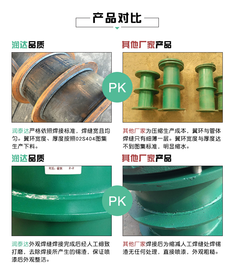 柔性防水套管是適用于管道穿過(guò)墻壁之處受有振動(dòng)或有嚴(yán)密防水要求的構(gòu)筑物的五金管件,一般生產(chǎn)企業(yè)是根據(jù)建筑科學(xué)研究院研制設(shè)計(jì)的S312、02S404標(biāo)準(zhǔn)圖集制造的。柔性防水套管穿墻處之墻壁,如遇非混凝土?xí)r應(yīng)改用混凝土墻壁,將套管一次凝固于墻內(nèi);柔性防水套管施廣泛用于建筑、化工、鋼鐵、自來(lái)水、污水處理等單位。
