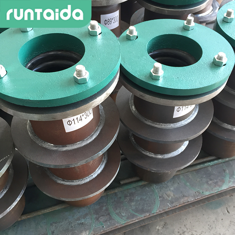 國(guó)標(biāo)柔性防水套管因?yàn)槭袌?chǎng)的不規(guī)范競(jìng)爭(zhēng),現(xiàn)階段分為國(guó)標(biāo)和非標(biāo)兩種,國(guó)標(biāo)指按建設(shè)部相關(guān)的02S404或02S312標(biāo)準(zhǔn)圖集選材和生產(chǎn),對(duì)法蘭厚度、翼環(huán)厚度、管徑與管壁厚度都有嚴(yán)格的要求。按設(shè)計(jì)標(biāo)準(zhǔn)尺寸制作。非標(biāo)指在外形與大概結(jié)構(gòu)符合圖集要求外,對(duì)法蘭厚度、翼環(huán)厚度、管徑與管壁厚度做出下差尺寸,從而減少重量,降低成本。嚴(yán)格來(lái)說(shuō),這些是不合格的產(chǎn)品,當(dāng)然對(duì)厚度及管壁做稍微下差尺寸,能減少工程成本也不至于影響使用,但是一定程度上影響使用性能。