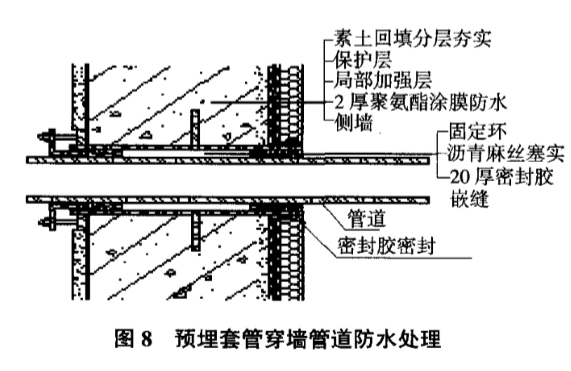 圖8預(yù)埋套管穿墻管道防水處理