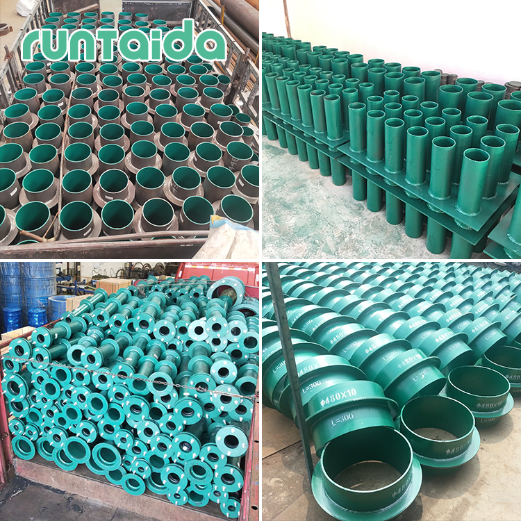 2. 柔性防水套管是為了解決一些地下工程需要管道穿墻的問題,通過的地方有嚴(yán)格的防水要求;還有一些建筑需要管道穿墻。同時,管道不能因溫度變化或外力而伸縮和位移,也不允許管道在外部因素的作用下振動而設(shè)計制造。其外殼需一次性澆筑在墻上,管道通過套管中間,管道外徑與套管中間用填料密封,起到防水減震的作用。